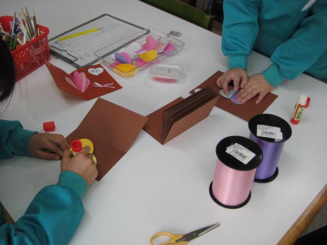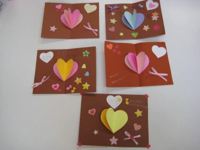 児童館では「飛び出すハートのメッセージカード」を作りました。